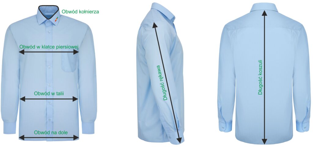 Wybierz właściwy rozmiar koszuli uzupełnij Nazwisko Imię i numer kadrowy pracownika dla którego został wybrany rozmiar i dodaj do koszyka.